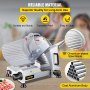 Mit den versteckten Schleifsteinen können Sie die Klinge bequem schärfen. Das Sicherheitsschild kann unvorhergesehene Unfälle vermeiden. Der Lebensmittelschieber sorgt dafür, dass die geschnittenen Lebensmittel fest auf dem Teller bleiben. Der wasserdichte Ein/Aus-Schalter ist leicht zu bedienen. Die rutschfesten Gummifüße sorgen für einen sicheren Stand.