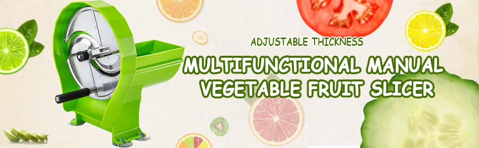 Der manuelle Gemüse-Obstschneider aus hochwertigen Aluminium- und Edelstahlmaterialien ist als multifunktionales, zeit- und arbeitssparendes Produkt konzipiert. Es funktioniert als Lebensmittelschneidegerät, um beim Schneiden von Obst und Gemüse zu helfen. Es ist die ideale Ausrüstung für gewerbliche Anwender und Heimanwender, die Sicherheit, Hygiene, hohe Effizienz und multifunktionale Schneidwerkzeuge suchen.