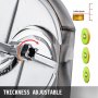 Mit dem kommerziellen Gemüsehobel von VEVOR ist es ganz einfach, die ideale Dicke für jede Scheibe zu erzielen. Dieser Hobel verfügt über einen Dickenmechanismus, der eingestellt werden kann. Dadurch können Sie die Dicke der Scheiben verändern. Sie können eine Scheibendicke von 0,2 mm bis 12 mm erreichen. Dazu müssen Sie nur den Knopf drehen.