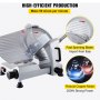 Unsere Fleischschneidemaschine verfügt über einen starken Motor mit einer Leistung von 250 W. Damit können Sie 50 Lebensmittel pro Minute schneiden, was Ihnen viel Zeit und Energie spart. Das Gehäuse besteht aus gegossenem Aluminium, und die Klinge mit einem Durchmesser von 12 Zoll / 300 mm ist aus verchromtem Stahl gefertigt, der korrosions- und rostfrei ist.