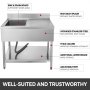 Die robuste 201-Edelstahlkonstruktion macht diese Spüle langlebiger. Perfekt für gewerbliche und private Installationen. Große Becken mit R-förmiger Ecke bieten viel Platz. Zusätzliches Grundboden zur Vorbereitung oder zum Lagern.