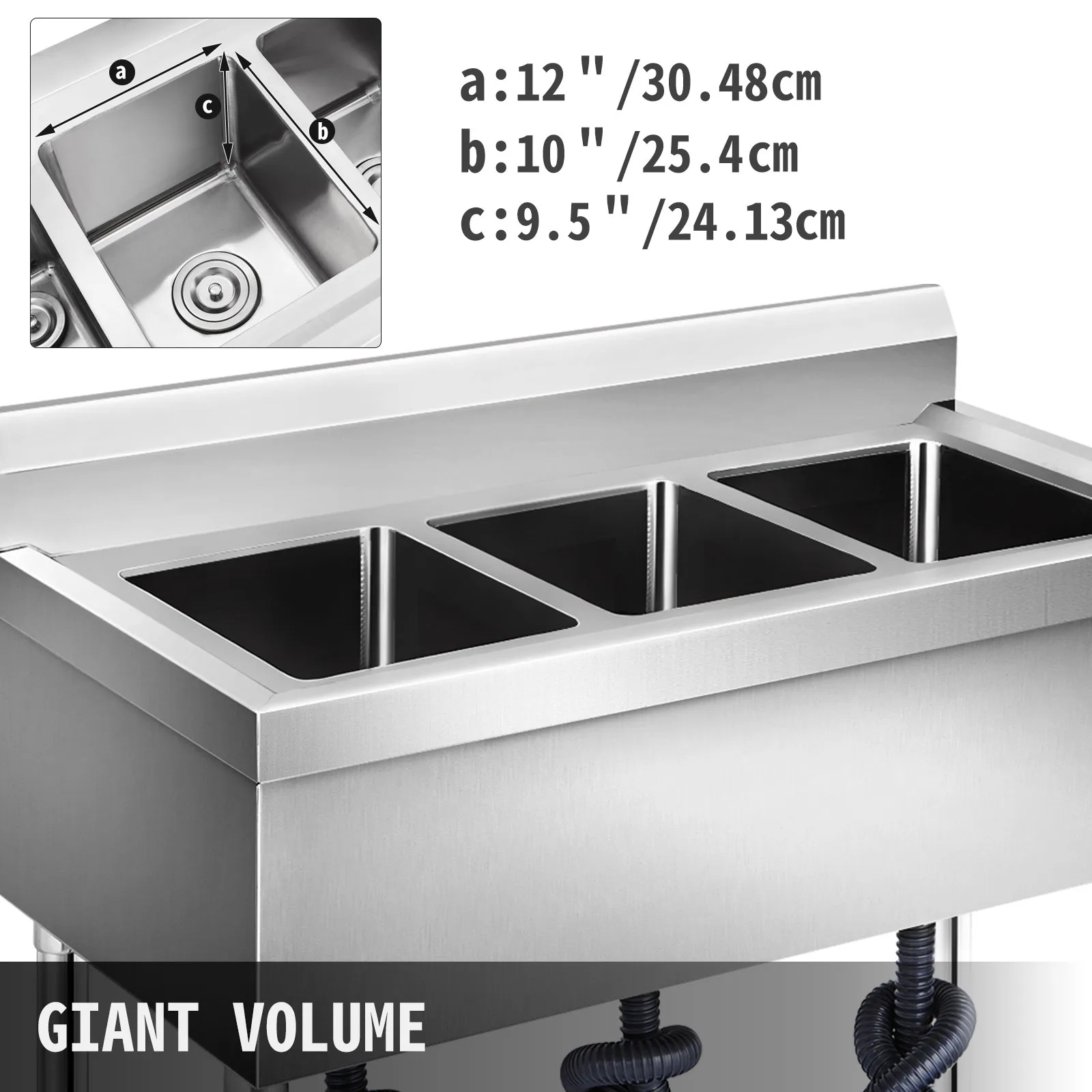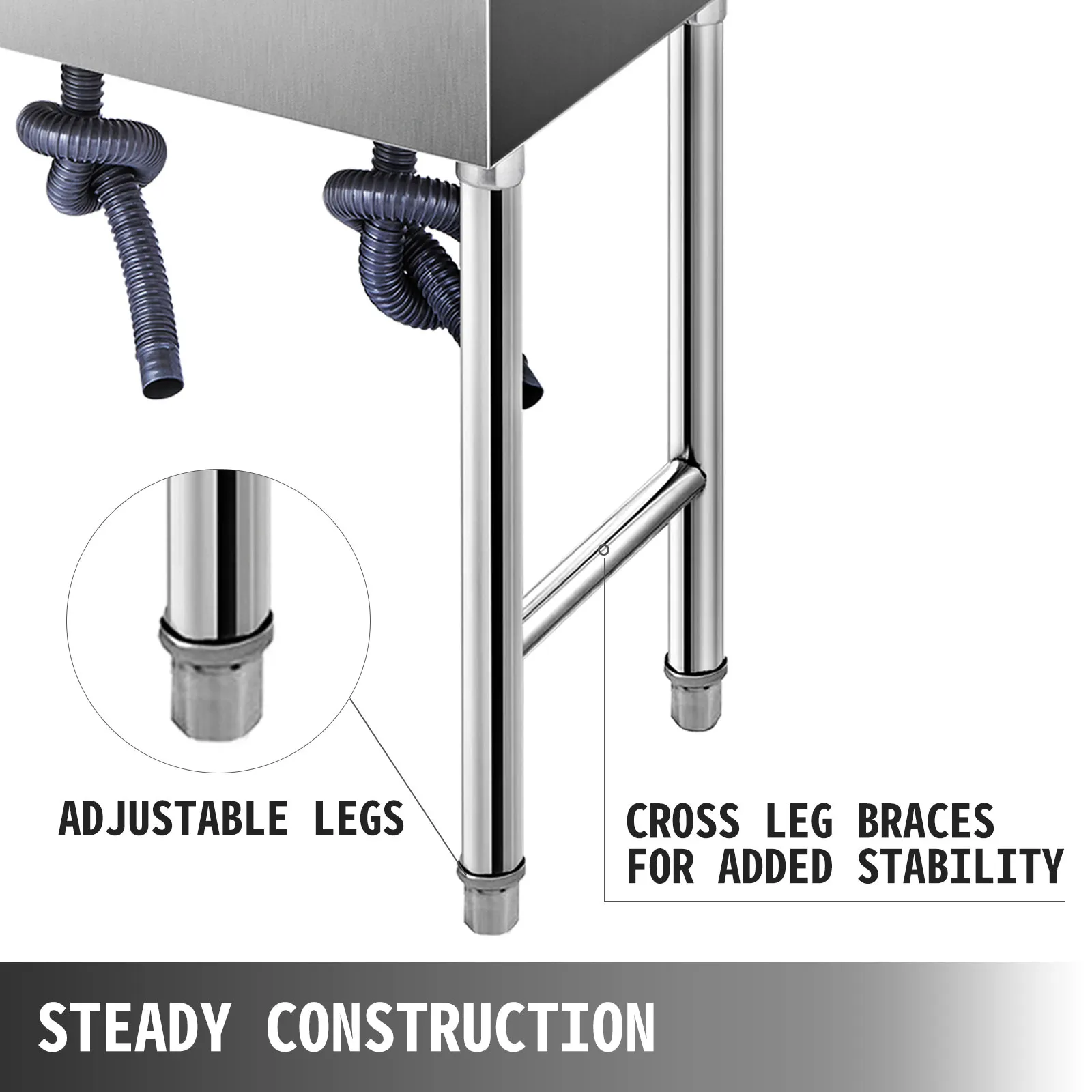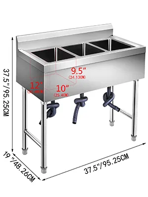 Wir bieten Ihnen ein hochwertiges Edelstahlbecken mit 3 Abteilen. Das Spülbecken verfügt über Edelstahlbeine mit einer Querstange für festen Halt. Außerdem ist die extra angeschweißte Wannenunterseite für Langlebigkeit ausgelegt. Es ist das perfekte Wasch- und Vorbereitungsspülbecken für den Einsatz in jeder Küche, Bar, Restaurant, Wäscherei, Hausmeisterraum, Cafeteria, Garage oder anderen gewerblichen Einrichtungen.