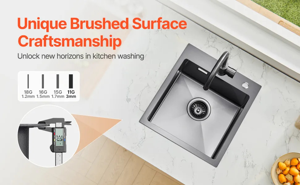 Die Aufsatz-Barspüle ist einfach zu installieren und erfordert keine größeren Änderungen an den Küchenschränken oder der Arbeitsplatte. Der extra dicke 3 mm Rand aus Edelstahl 304 sorgt für eine sichere Aufputz-Montage.