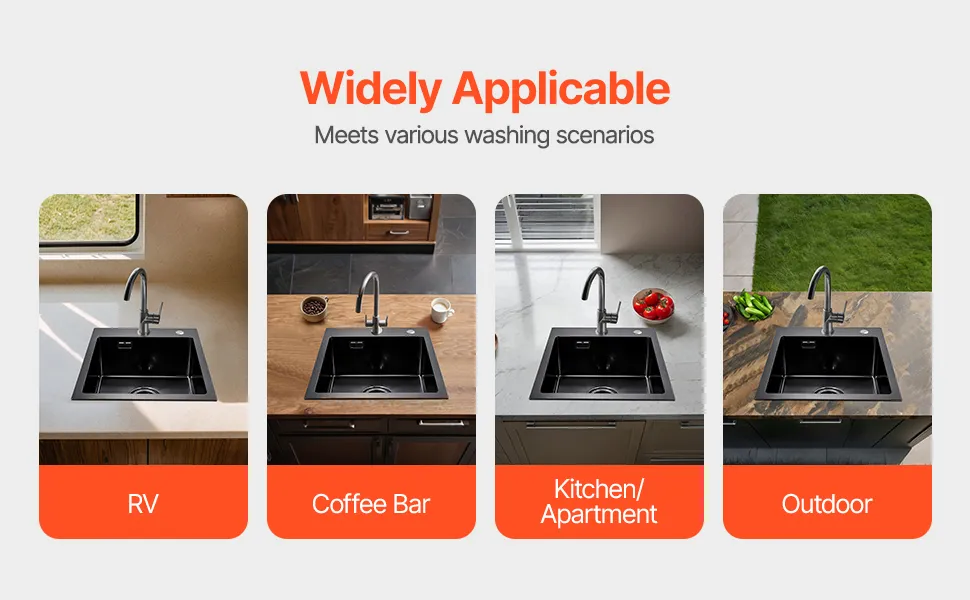 VEVOR Küchenspüle Einbauspüle Spülbecken 40 cm aus Edelstahl Spülen zur Montage auf der Oberseite, Einzelbecken mit Zubehör, Haushaltsspülbecken für Wohnmobil Vorbereitungsküche Bar (schwarz)