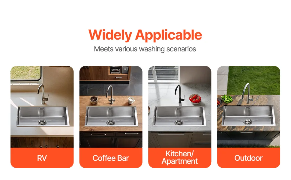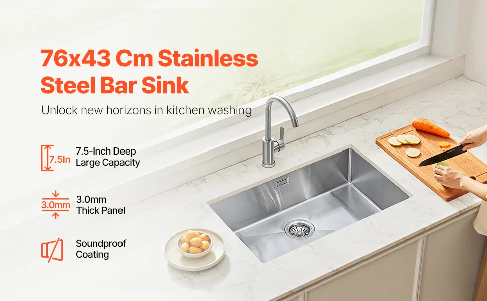 Die Einbau-Barspüle ist einfach zu installieren und erfordert keine größeren Änderungen an den Küchenschränken oder der Arbeitsplatte. Der 3 mm dicke Rand aus Edelstahl 304 sorgt für eine sichere Installation.