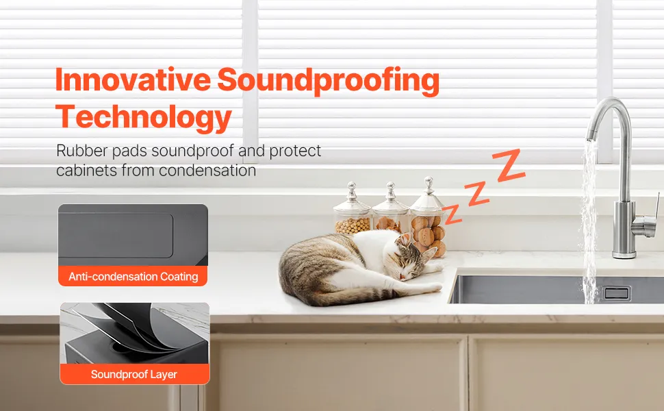 Dieses Einbauwaschbecken im Landhausstil verwendet schalldichte Polster und Dämmmaterialien mit Grundierung zur Geräuschreduzierung und sorgt so für hervorragende Schalldämmung und leise Zuverlässigkeit.