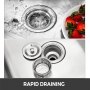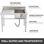 Die robuste 201-Edelstahlkonstruktion macht diese Spüle langlebiger. Perfekt für gewerbliche und private Installationen. Das große Waschbecken mit R-förmigen Ecken bietet reichlich Platz für Ablagen.