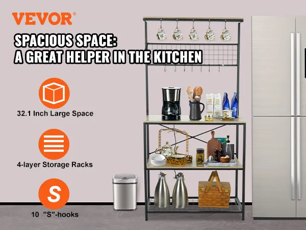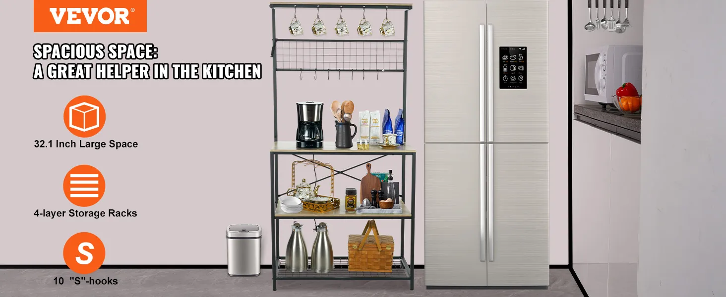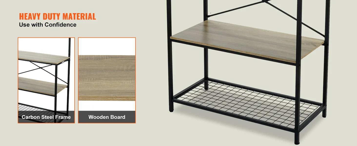 Mehrstöckiges Backregal für die Küche: Das VEVOR Industrie-Backregal verfügt über 4 geräumige Ablagen und 10 Haken, die viel Stauraum auf einer Fläche von 33,1 x 15,7 x 66,9 Zoll (840 x 400 x 1700 mm) bieten. Hier können Sie alle möglichen Dinge des täglichen Bedarfs verstauen, damit Sie auf alles vorbereitet sind! Damit Sie immer wissen, was in Ihrer Küche vor sich geht.