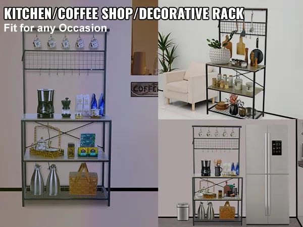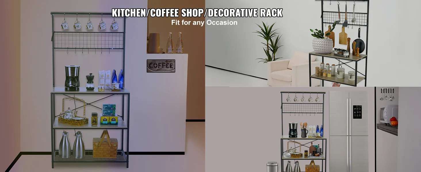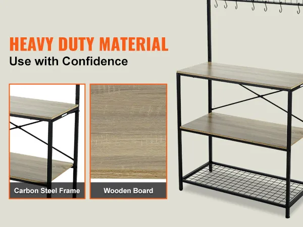 Der Stahlrahmen und die Holzplatte bieten eine solide Basis. Er kann alle Arten von Gewürzflaschen, Mikrowellen, Wein, Geschirr usw. tragen.