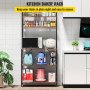 - Sind Sie immer noch besorgt über die Unordnung auf den Arbeitsplatten in Ihrem Zimmer? Verschwenden Sie immer noch Zeit damit, etwas zu finden? Wählen Sie diesen VEVOR 5-Schicht-Küchenbäcker, um Ihre Sachen mühelos aufzubewahren und Ihren Zimmertisch wie neu aussehen zu lassen. Die Kombination aus Eisenrahmen und Holzplatte macht nicht nur Ihren Wohnstil einzigartig, sondern bietet dank seiner hohen Tragfähigkeit auch Platz für all Ihre Habseligkeiten. Das verstellbare Regal, die Füße und die Haken wurden speziell für Benutzerfreundlichkeit und Komfort entwickelt. Machen Sie sich dank Ihres neuen Assistenten bereit für ultimative Unterstützung.