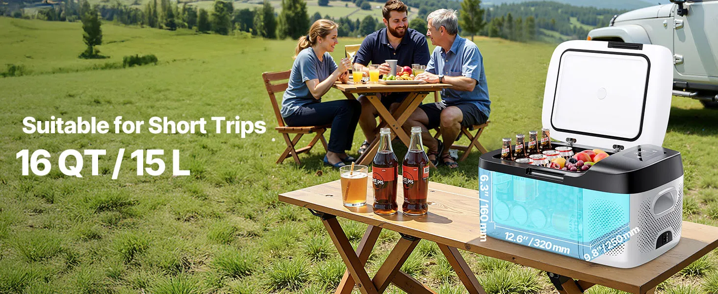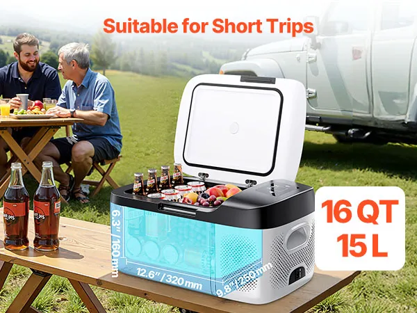 Vielseitig einsetzbar im Freien: Dank des kompakten 15 L (16 QT) Formats lässt sich die Kühlbox problemlos im Kofferraum, hinter den Sitzen oder auf der Ladefläche verstauen. Das 12-V-Kompressorsystem ist für den Einsatz im Freien auf unebenem oder steilem Gelände geeignet und ideal für Wohnmobilreisen, Campingplätze, Boote, Camping, Angeln und lange Autoreisen