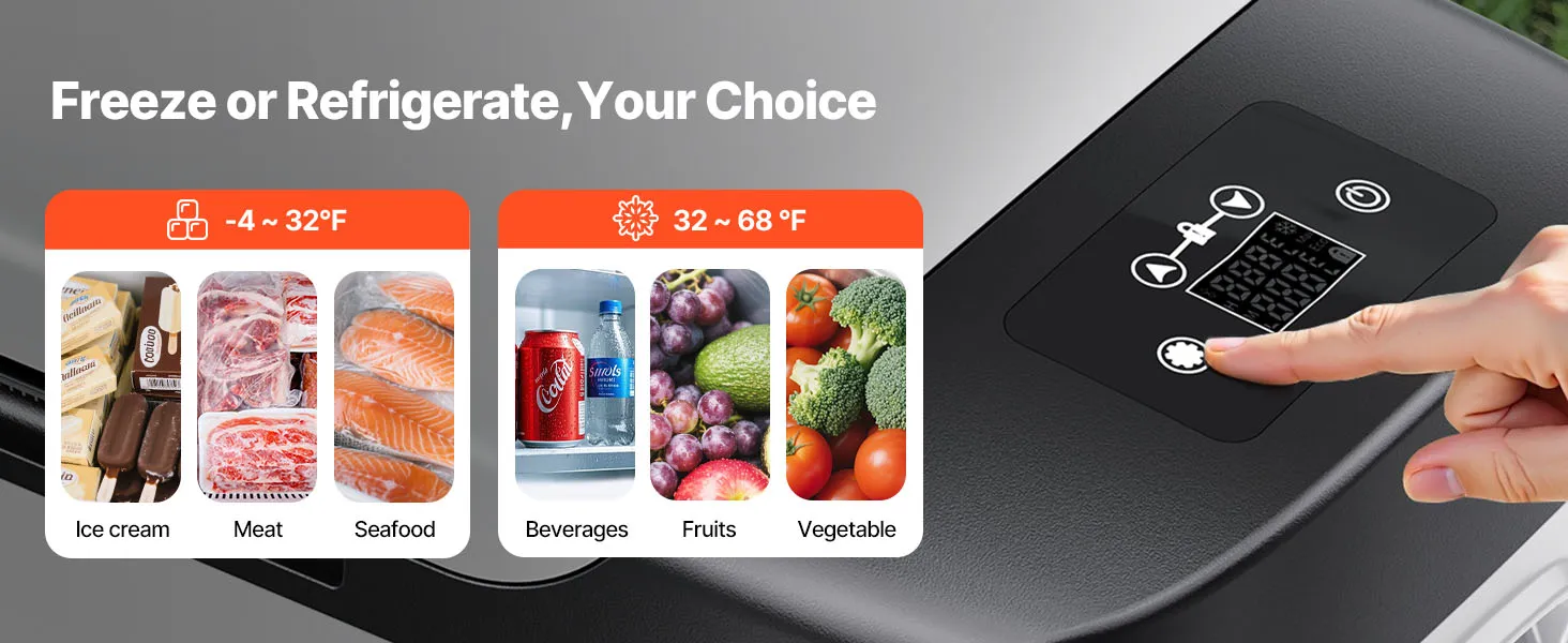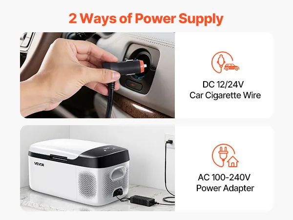 Zuverlässiger Netzschalter: Dank der Optionen 100–240 V AC und 12/24 V DC lässt sich die tragbare Gefriertruhe problemlos zwischen Innen- und Fahrzeugstromversorgung umschalten. Ein dreistufiges Akkusystem reduziert die Belastung des Fahrzeugsystems, und der geräuscharme Betrieb sowie der stabile 45°-Winkel sorgen für Komfort auf langen Fahrten