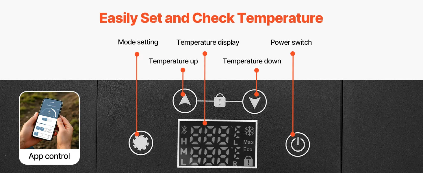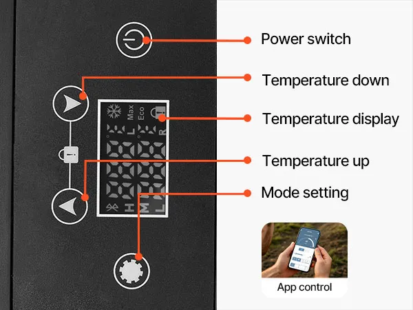 Verfügt über ein digitales Bedienfeld zur Einstellung von Temperatur und Betriebsmodus sowie zur Anzeige von Temperatur- und Leistungsdaten in Echtzeit. Die Einstellungen lassen sich bequem per App verwalten, und der USB-Anschluss ermöglicht schnelles Aufladen des Smartphones unterwegs.