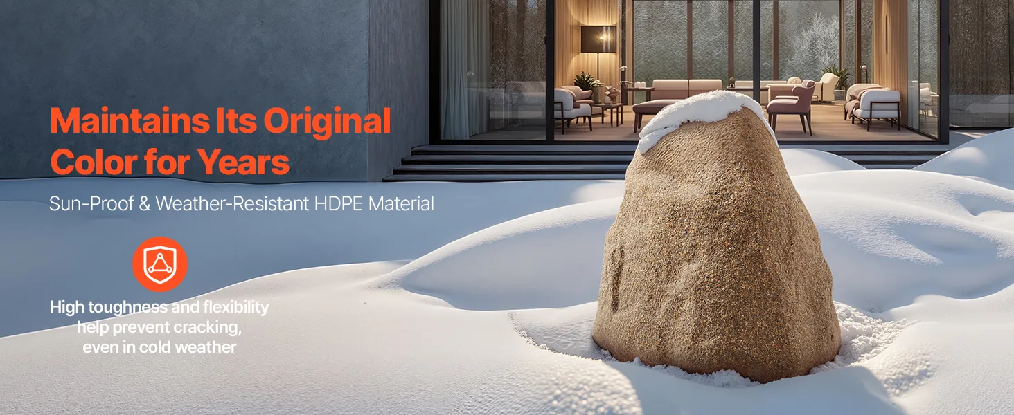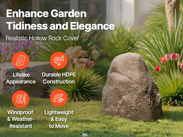 Premium-Anlagenabdeckung: Unser Gartenfelsen aus HDPE ist druck- und rissfest. Sie verdeckt Brunnen, Rohre und Sprinklerventile und schützt sie vor Beschädigungen. Sie ist sonnen- und regenbeständig und verlängert so die Lebensdauer von Anlagen.