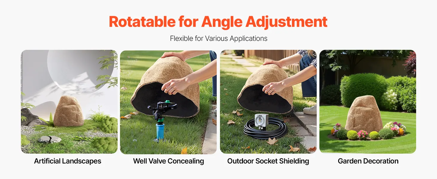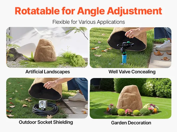 Der Winkel lässt sich flexibel drehen und an Ihre Bedürfnisse anpassen. Diese Landschafts-Steinabdeckung eignet sich ideal zum Abdecken von Schachtdeckeln, für kleine Pumpen, zum Abschirmen von Schaltkästen und als Gartendekoration. Das vielseitige Design macht sie praktisch und stilvoll.