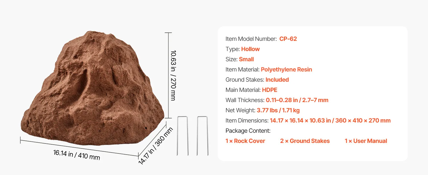 Premium-Anlagenabdeckung: Unsere Kunststeinabdeckung aus HDPE ist druck- und rissfest. Sie verdeckt Brunnen, Rohre und Sprinklerventile und schützt sie vor Beschädigungen. Sie ist sonnen- und regenbeständig und verlängert so die Lebensdauer von Anlagen.