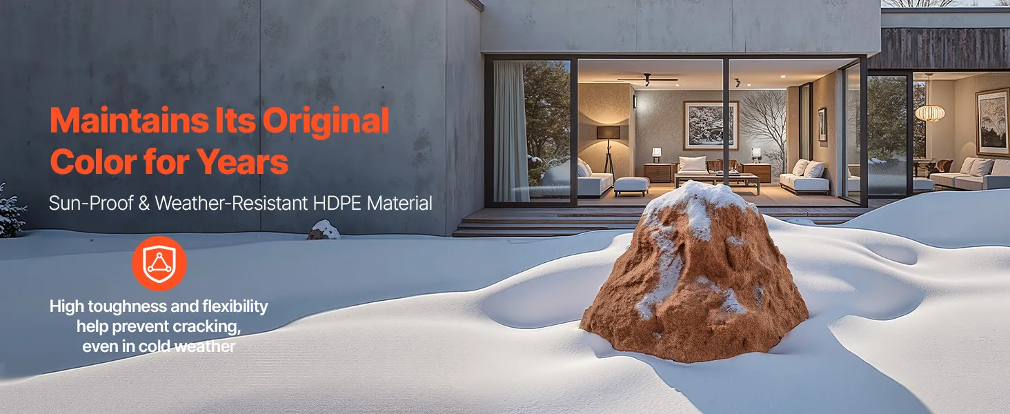 Diese aus leichtem Polyethylen gefertigten Kunstfelsabdeckungen lassen sich von einer Person leicht anheben und bewegen. Passen Sie die Position je nach Saison oder Standortanforderungen flexibel an.