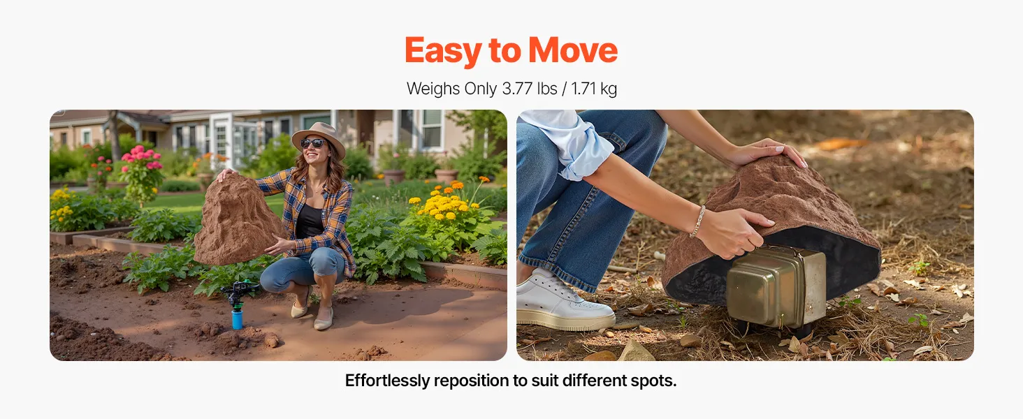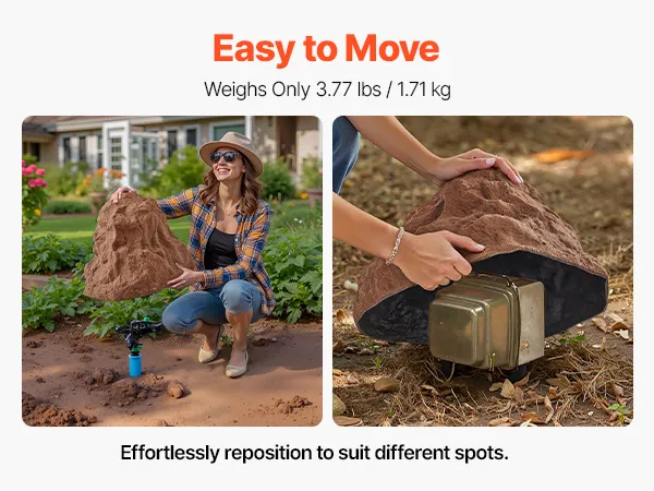 Leichtgewicht für einfaches Bewegen: Unsere Landschafts-Felsabdeckung wiegt nur 1,7 kg und verfügt über eine robuste und leichte Hohlstruktur. Sie lässt sich leicht von einer Person tragen und platzieren. Das felsähnliche Design lässt sich drehen, um den Winkel anzupassen und sich so an verschiedene Szenen anzupassen.