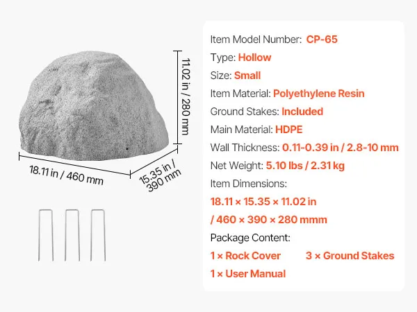 Premium-Anlagenabdeckung: Unsere Kunststeinabdeckung aus 100 % HDPE ist druck- und rissfest. Sie verdeckt Brunnen, Rohre und Sprinklerventile und schützt sie vor Beschädigungen. Sie ist sonnen- und regenbeständig und verlängert so die Lebensdauer von Anlagen.