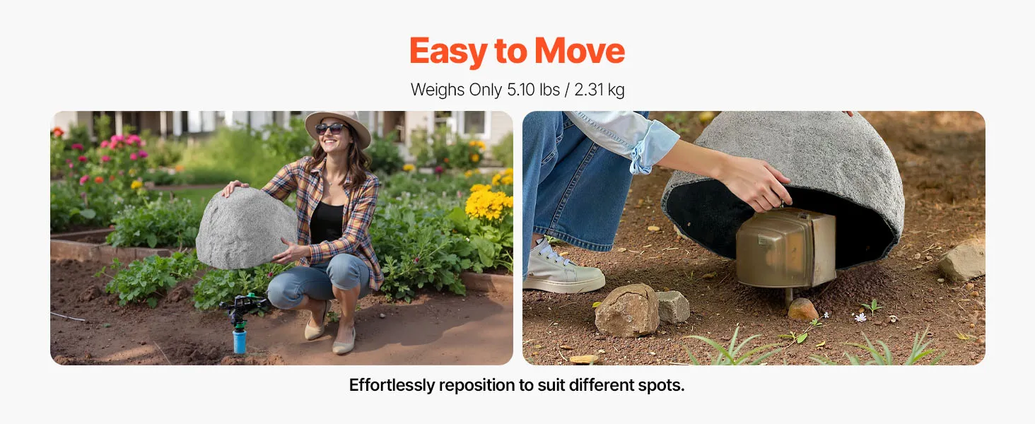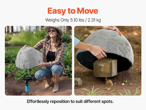 Leichtgewicht für einfaches Bewegen: Unsere Landschafts-Felsabdeckung wiegt nur 2,3 kg und verfügt über eine robuste und leichte Hohlstruktur. Sie lässt sich leicht von einer Person tragen und platzieren. Das felsähnliche Design lässt sich drehen, um den Winkel anzupassen und sich an verschiedene Szenen anzupassen.