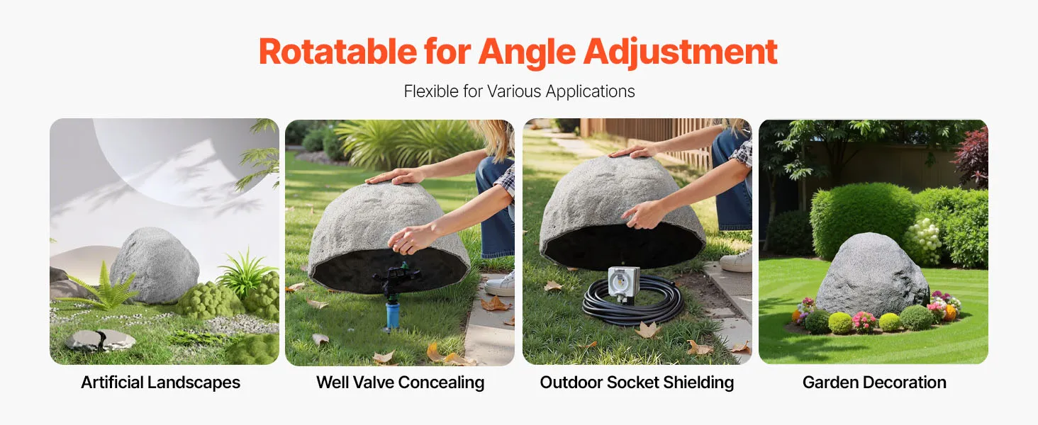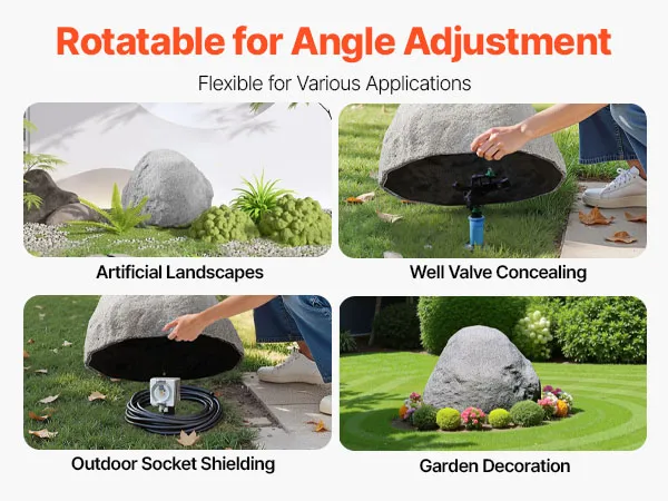Der Winkel lässt sich flexibel drehen und an Ihre Bedürfnisse anpassen. Diese Landschafts-Steinabdeckung eignet sich ideal zum Abdecken von Schachtdeckeln, für kleine Pumpen, zum Abschirmen von Schaltkästen und als Gartendekoration. Das vielseitige Design macht sie praktisch und stilvoll.