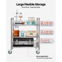 VEVOR Edelstahlwagen 3-stöckiger Rollwagen für Labor & Küche mit Feststellbaren Rädern, Servierwagen für Medizinische Einrichtungen, Mobiles Serviertablett für Krankenhäuser Restaurants Küchen