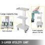 Der VEVOR-Allzweckwagen mit 3 Ablagen verfügt über vielseitige Aufbewahrungsfunktionen. Jede dieser drei Ablagen ist für die Aufnahme unterschiedlicher Gegenstände ausgelegt. Die obere Ablage eignet sich perfekt für häufig verwendete Gegenstände, während in der mittleren kleinere Werkzeuge oder Vorräte aufbewahrt werden können. Diese Anordnung stellt sicher, dass alles, was Sie brauchen, in Reichweite ist. Das Design des Wagens maximiert den Platz und organisiert Ihren Arbeitsplatz. Ob im Labor, in der Zahnarztpraxis oder zu Hause, dieser Wagen erfüllt verschiedene Aufbewahrungsbedürfnisse. Seine robuste Bauweise stellt sicher, dass er verschiedene Gegenstände handhaben kann, ohne die Stabilität zu beeinträchtigen. Unser Allzweckwagen mit 3 Ablagen ist ein unverzichtbares Werkzeug für die Aufrechterhaltung eines hygienischen und effizienten Arbeitsplatzes.