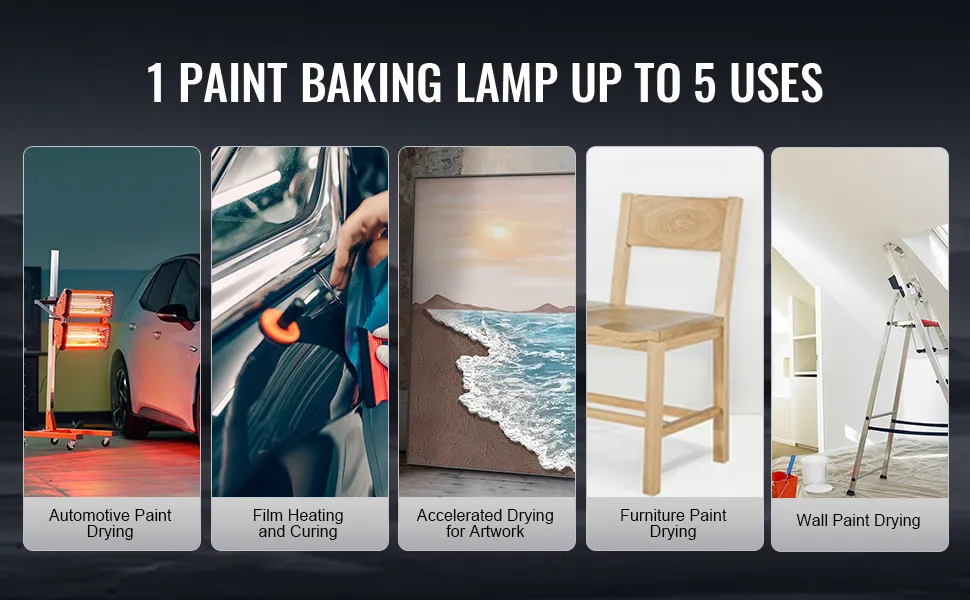 Schnelles Trocknen: Die 2200-W-Doppelkopflampe trocknet die Grundierung schnell & deckt eine große Fläche von 0,48 Quadratmeter ab. Das kurzwellige Infrarot sorgt für eine hohe Durchdringung und die Quarzlampenröhre verstärkt den Glanz. Sie ist für Benutzer konzipiert, die effiziente, schnelle und qualitativ hochwertige Malergebnisse wünschen.