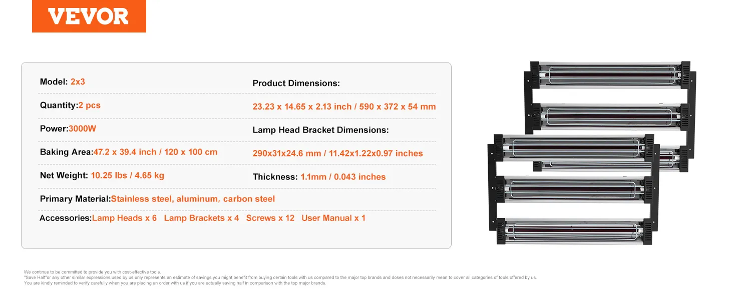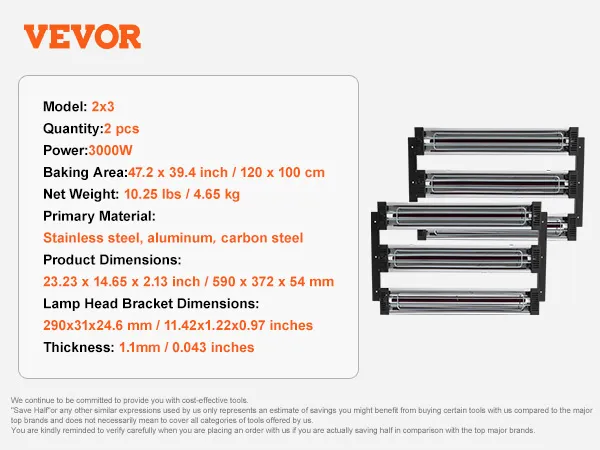 Erleben Sie zuverlässiges Trocknen mit der VEVOR 3000W Sprühbacklampe!