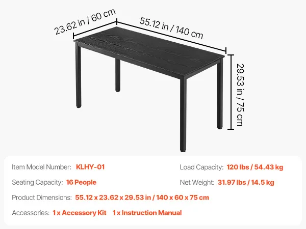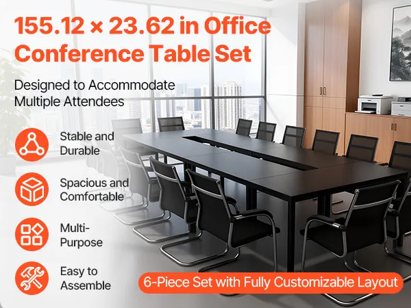 Großzügiger Arbeitsbereich für mehrere Personen: Mit den Maßen 55,12 x 23,62 Zoll (140 x 60 cm) ermöglicht dieser 6-teilige Konferenztisch flexible Layouts für Besprechungsanforderungen und bietet Platz für bis zu 16 Personen. Ideal für Teamdiskussionen, Schulungen und Remote-Meetings mit viel Platz