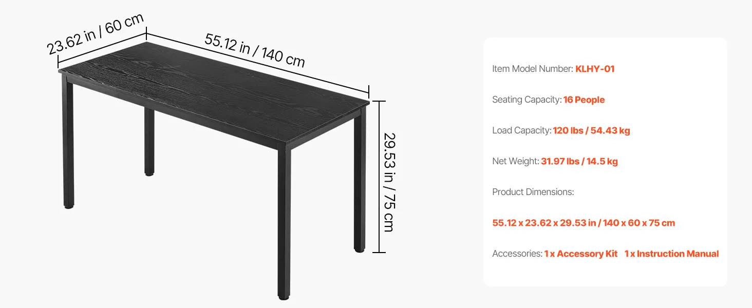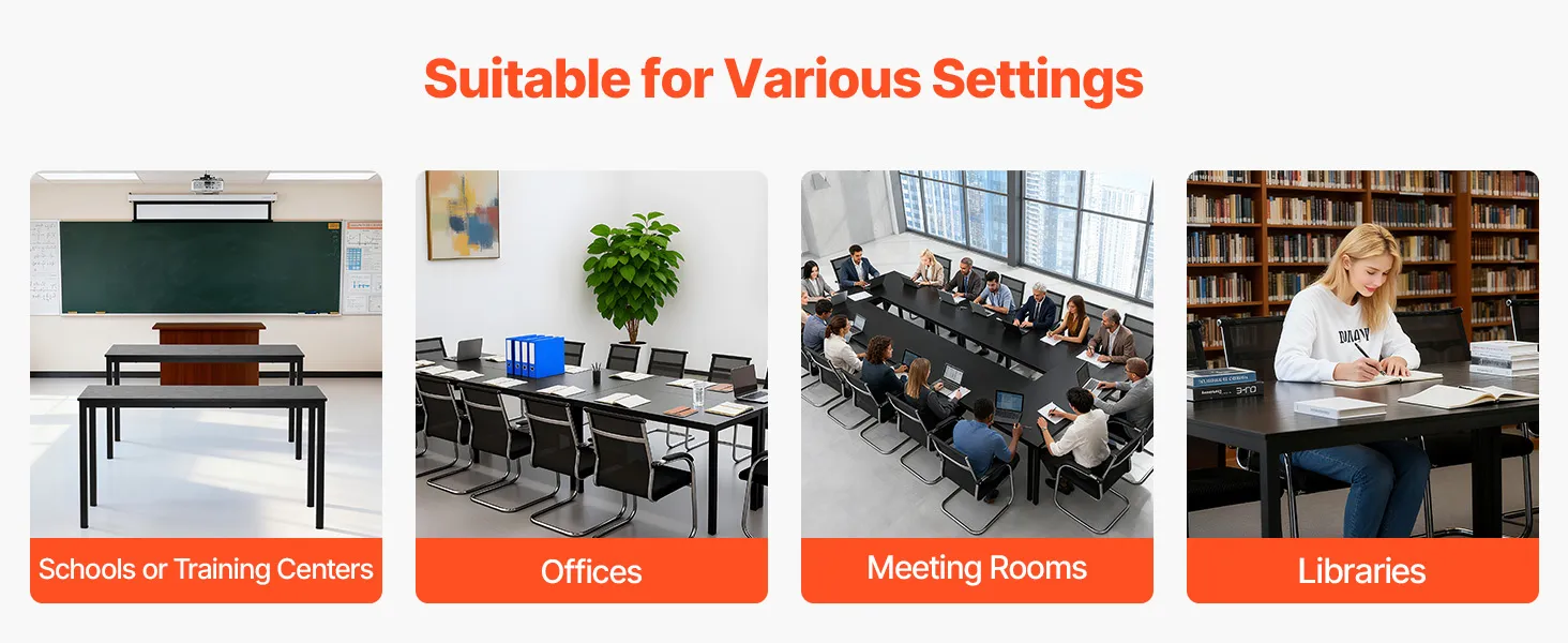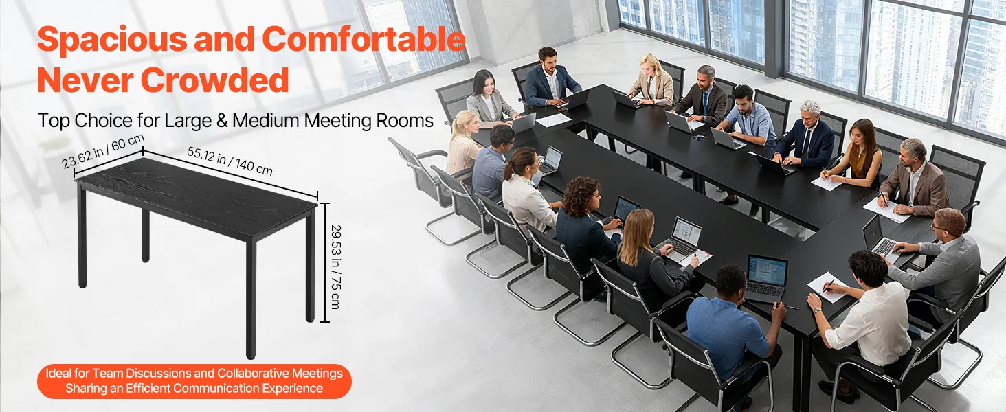 Vielseitig einsetzbar: Das elegante schwarze Finish passt perfekt in moderne Büros. Dieser Büro-Besprechungstisch eignet sich für Büros, Schulungsräume, Besprechungsbereiche, Wohnungen, Konferenztische, Esstische, Gaming-Schreibtische und Arbeitstische