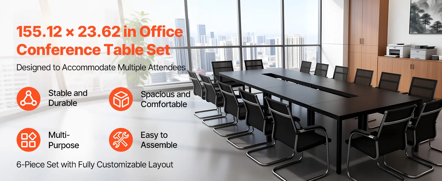 VEVOR Konferenztisch Besprechungstisch für 16 Personen 6-tlg. 140 x 60 cm (pro) rechteckiger Kombinationsschreibtisch Meetingtisch Mehrzwecktisch Pausentisch mit Metallbeinen für Büro Konferenzraum