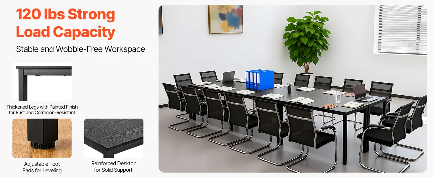 Robuste & langlebige Konstruktion: Dieser Besprechungstisch mit 0,59 Zoll (15 mm) dicker Spanplatte und verstärkten Metallbeinen trägt bis zu 120 lbs (54 kg). Zusätzliche Querstreben und eine Rostschutzbeschichtung sorgen für festen Halt und Stabilität ohne Wackeln