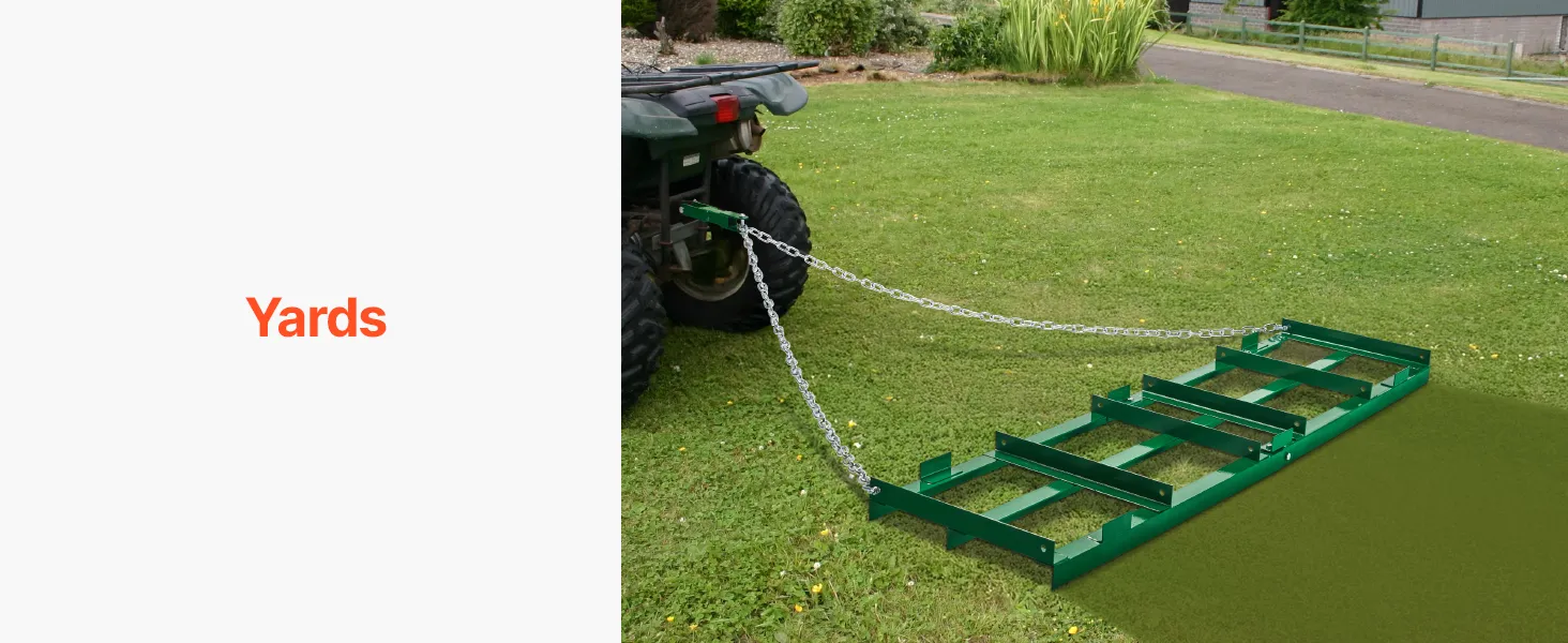 Große Reichweite und Effizienz: Mit einer Breite von 1830 mm bearbeitet diese Schleppegge große Flächen effizient in einem Durchgang und ebnet Erde, Gras, Kies und Steine ein. Die mitgelieferten Querstreben sorgen für zusätzliches Gewicht und verbessern die Effizienz beim Einebnen. Sie eignet sich ideal für Bauernhöfe, Rasenflächen und Schotterauffahrten und dient als effektiver Einfahrtsplaner.