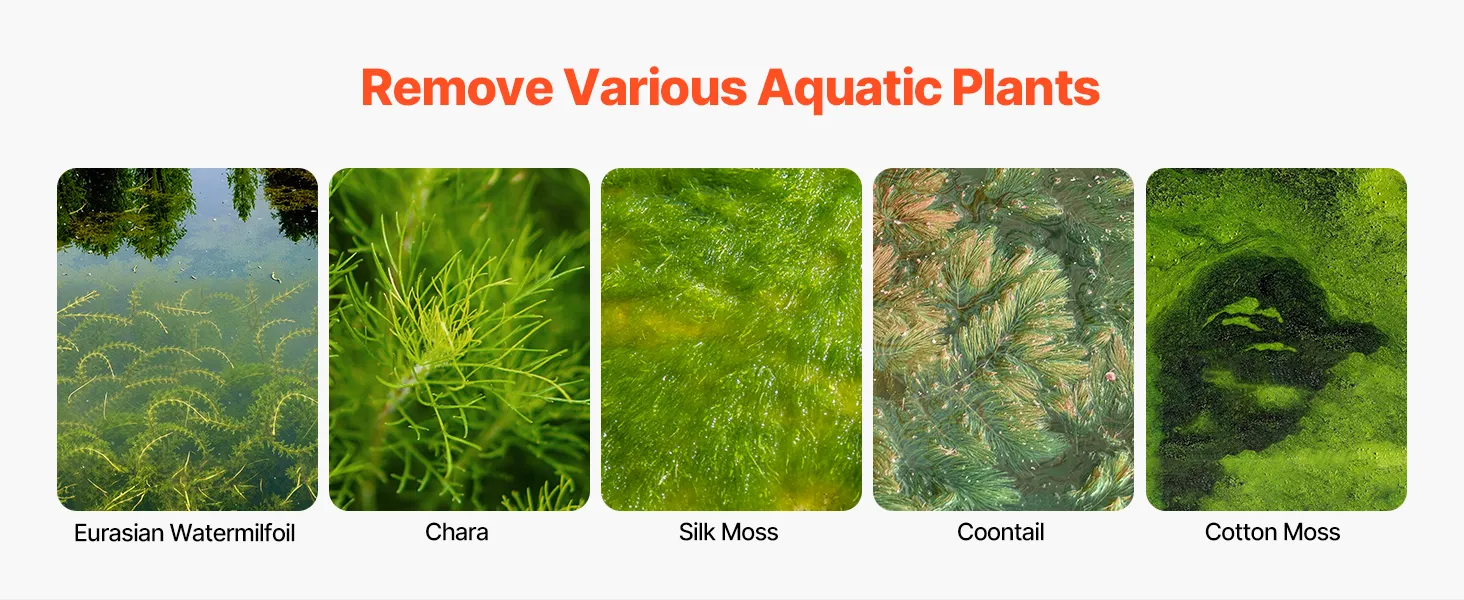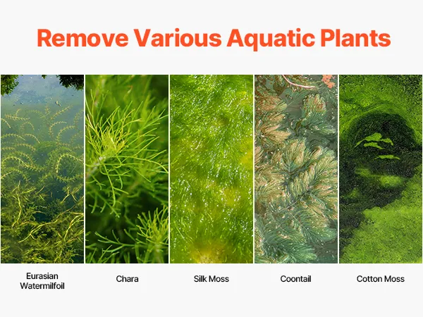 Dieser Wasserpflanzenschneider entfernt Tausendblatt, Chara, Seidenmoos, Wasserlappen und Wollmoos. Er ist ideal für den Hausteich und die gewerbliche Wasserstraßenbewirtschaftung und hält das Wasser sauber und klar.