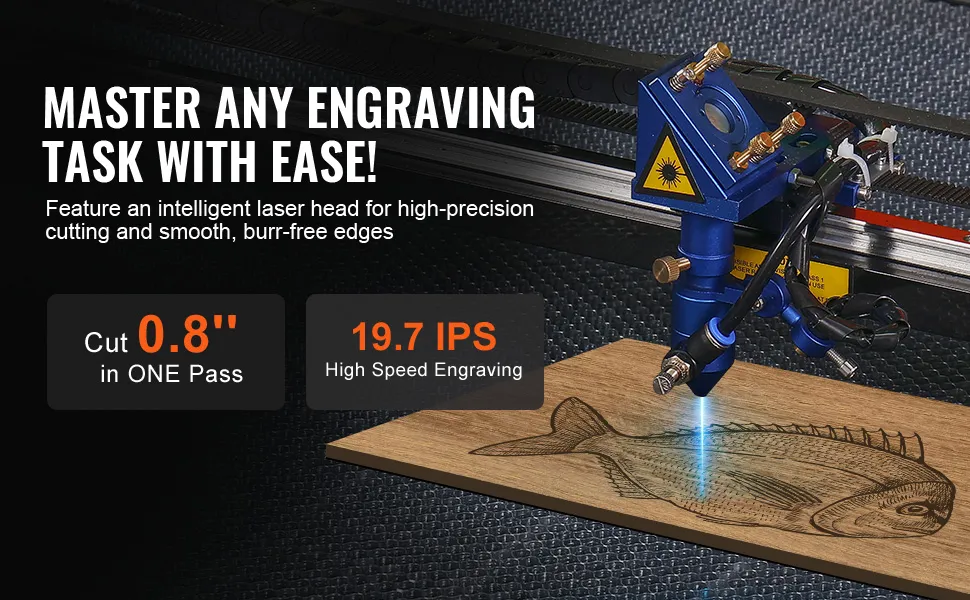 Intelligenter Laserkopf: Unser Laser-Graviergerät verfügt über einen intelligenten Laserkopf für hohe Schnittpräzision und erzeugt glatte, gratfreie Schnitte. So treffen Sie garantiert Ihr Ziel! Der rote Punkt zeigt den Gravurpunkt an und markiert den Arbeitspfad effektiv. Er rahmt außerdem die Projektgröße ein, während die lineare Führungsschiene für gleichmäßiges Kurvenschneiden sorgt.