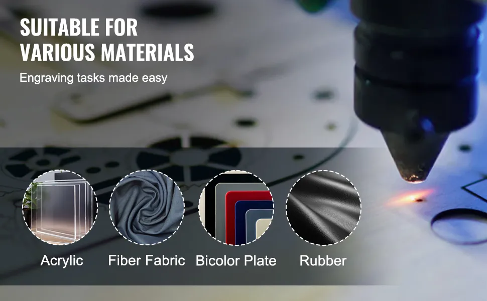 Mit unserem Lasernetzteil können Sie die Lasergravur von Acryl, Fasergewebe, zweifarbigen Platten, Gummi und anderen Materialien durchführen. Sie können das Gravurmaterial Ihrer Wahl auswählen.