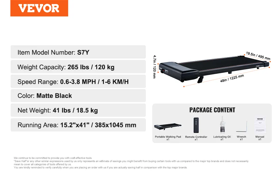 VEVOR Walking Pad Laufband unter den Schreibtisch, Laufband zum Arbeiten, funktionierendes Laufband mit 120 kg Tragkraft, tragbares Pad mit 2,5 PS, Fernbedienung LED-Anzeige 1-6 km/h Einstellbar