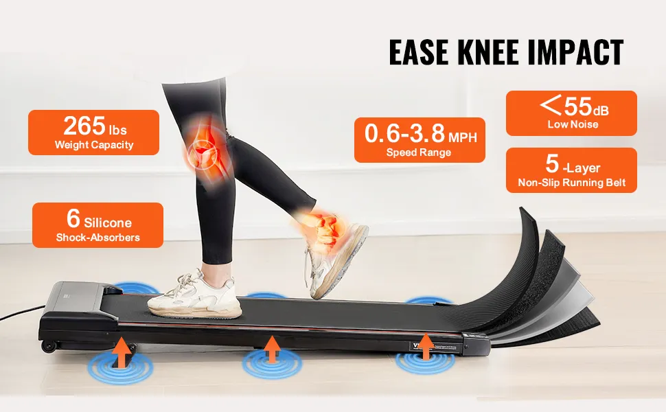 Dieses Laufband für den Schreibtisch steigert den Kalorienverbrauch und trainiert effektiv die Hüft- und Wadenmuskulatur mit einer Steigfähigkeit von bis zu 3 %. Mit einem Kalorienverbrauch von bis zu 330 Kcal pro Stunde ist es ideal für ein effektives Training zu Hause.