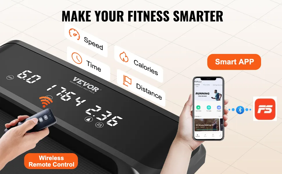Verfolgen Sie Ihren Trainingsfortschritt ganz einfach mit der Fernbedienung oder der Smart App. Die Echtzeitanzeige wichtiger Messwerte wie Geschwindigkeit, Kalorien, Zeit und Distanz ermöglicht eine umfassende Fitnessüberwachung.