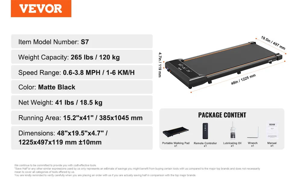 VEVOR Walking Pad Laufband unter den Schreibtisch, Laufband zum Arbeiten, funktionierendes Laufband mit 120 kg Tragkraft, tragbares Pad mit 2,5 PS, Fernbedienung LED-Anzeige 1-6 km/h Schwarz