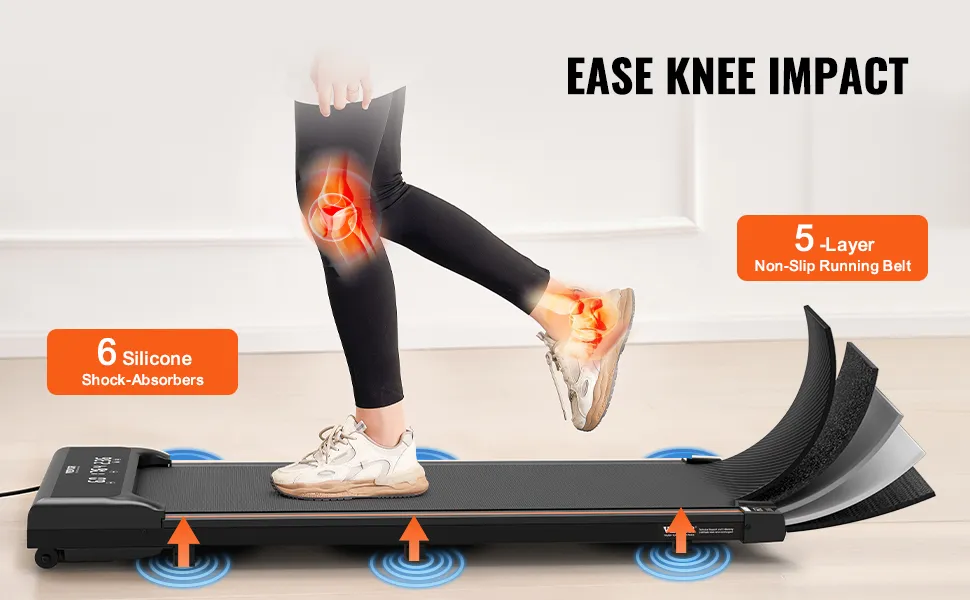 Fortschrittliche Stoßdämpfung: Genießen Sie ein komfortables Geherlebnis mit unserem fortschrittlichen Stoßdämpfungssystem. Ausgestattet mit 6 Silikon-Stoßdämpfern und einem 5-lagigen rutschfesten Laufband sorgt diese Gehunterlage für minimale Belastung Ihrer Knie und Knöchel.