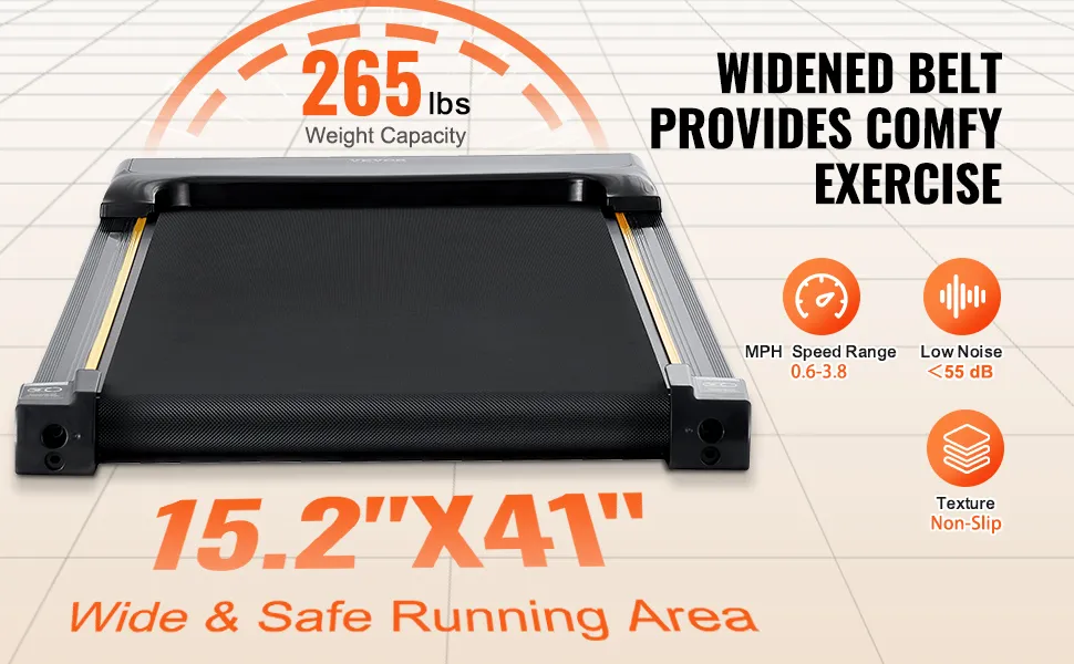 Leistungsstarker & leiser Motor: Trainieren Sie zu Hause ohne Lärmbelästigung dank des leistungsstarken und leisen Motors. Mit einer Motorleistung von 2,5 PS arbeitet dieses Laufband für unter den Schreibtisch mit weniger als 55 dB, sodass Sie zu jeder Tageszeit trainieren können, ohne andere in Ihrem Haushalt zu stören.