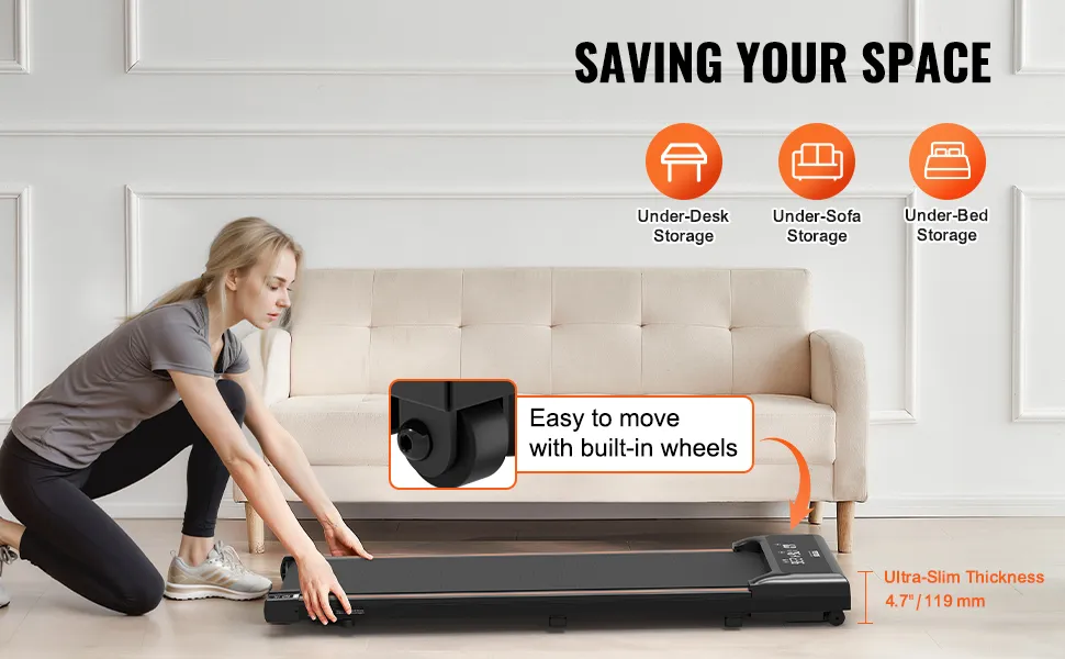 Ultraschlank & platzsparend: Das kompakte Design erleichtert die Aufbewahrung und den Transport dieser tragbaren Gehunterlage. Mit einer schlanken Dicke von 4,7 Zoll (119 mm) passt sie problemlos unter ein Sofa, Bett usw. Dank der integrierten Räder können Sie sie bei Bedarf mühelos bewegen. Installationsfreies Design, sofort einsatzbereit.