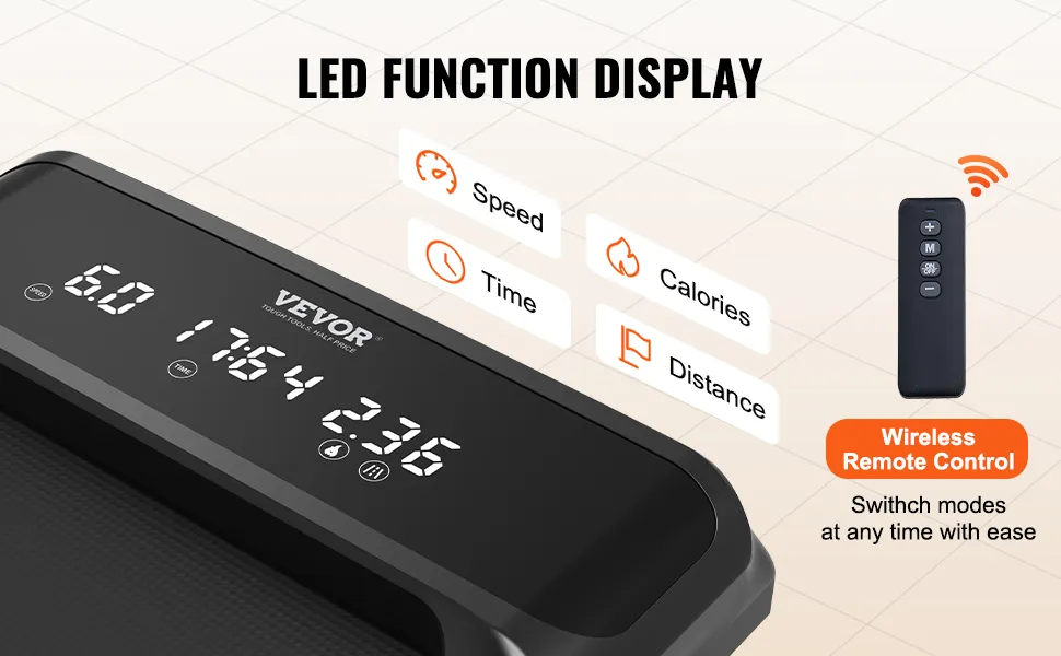 Fernbedienung & LED-Anzeige: Verfolgen Sie Ihren Trainingsfortschritt in Echtzeit mit der integrierten LED-Anzeige. Überwachen Sie mühelos Ihre Geschwindigkeit, Kalorien, Zeit und Distanz. Die mitgelieferte Fernbedienung bietet bequemen Zugriff auf die Einstellungen, ohne Ihr Trainingsprogramm zu unterbrechen.