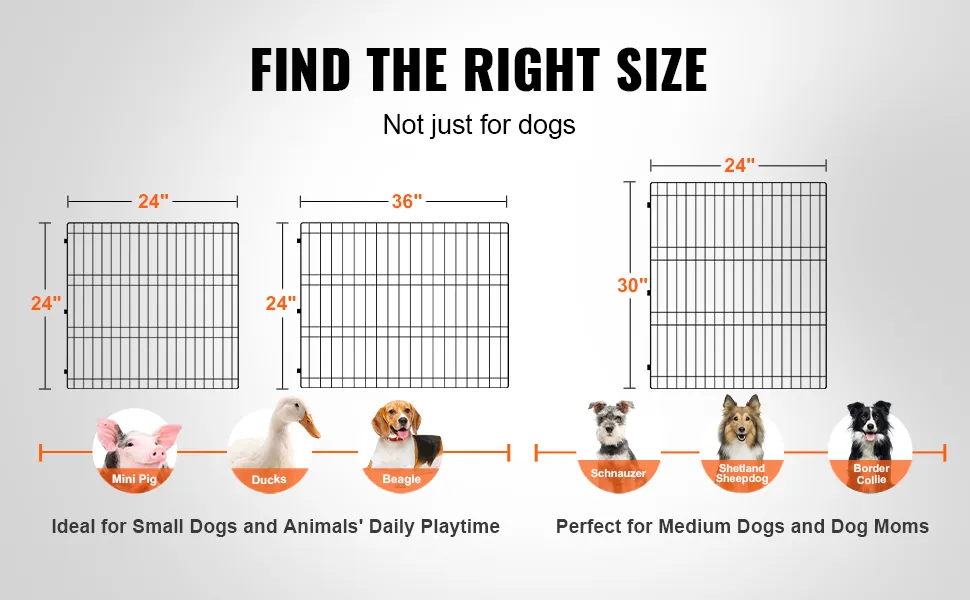 Ideal für verschiedene Haustiere: Der 30 Zoll / 760 mm hohe Hundelaufstall ist perfekt für mittelgroße Hunde vom Welpenalter bis zum Erwachsenenalter. Er eignet sich für Rassen wie Border Collies, Schnauzer, Shelties sowie Katzen, Kaninchen, Enten und Meerschweinchen.