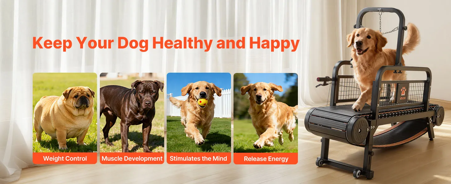 VEVOR Hundelaufband 1910x570x1400 mm, für mittelgroße bis große Hunde bis 199,58 kg, Laufband mit stufenloser Verstellung, Bremse & Rollen, Hundelaufmaschine, 110 mm Steigung