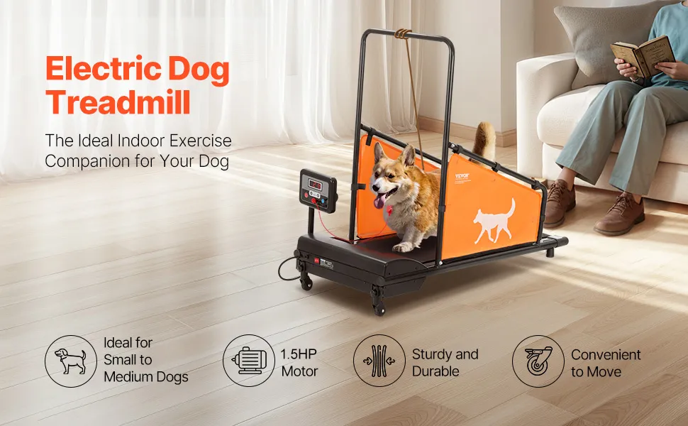 VEVOR Hundelaufband für mittelgroße Hunde bis 90 kg, elektrisches Hundelaufgerät mit 3 verstellbaren Rampen, Indoor-Laufband für Haustiere mit LCD-Bildschirm, Dog Pacer-Laufband für Training