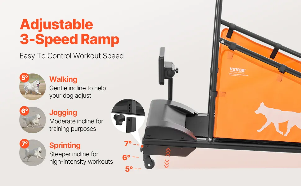 Das Laufband verfügt über verstellbare Beine zum Anpassen der Neigung. So können Sie die Trainingsintensität Ihres Hundes steuern und den Fettabbau effektiv fördern.