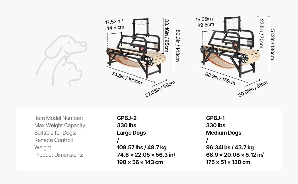 Geeignet für große Hunde: Mit großen Abmessungen von 175 x 51 x 130 cm (68,9 x 20,08 x 5,12 Zoll) und einer Lauffläche von 39,5 cm (15,55 Zoll) ist dieses Laufband für Haustiere ideal für Hunde mit einem Gewicht von bis zu 220 lbs (ca.100 kg) und einer Größe von 29,5 Zoll (ca. 75 kg) , darunter Rassen wie Alaskan Malamutes, Berner Sennenhunde, Deutsche Schäferhunde und Pitbulls.